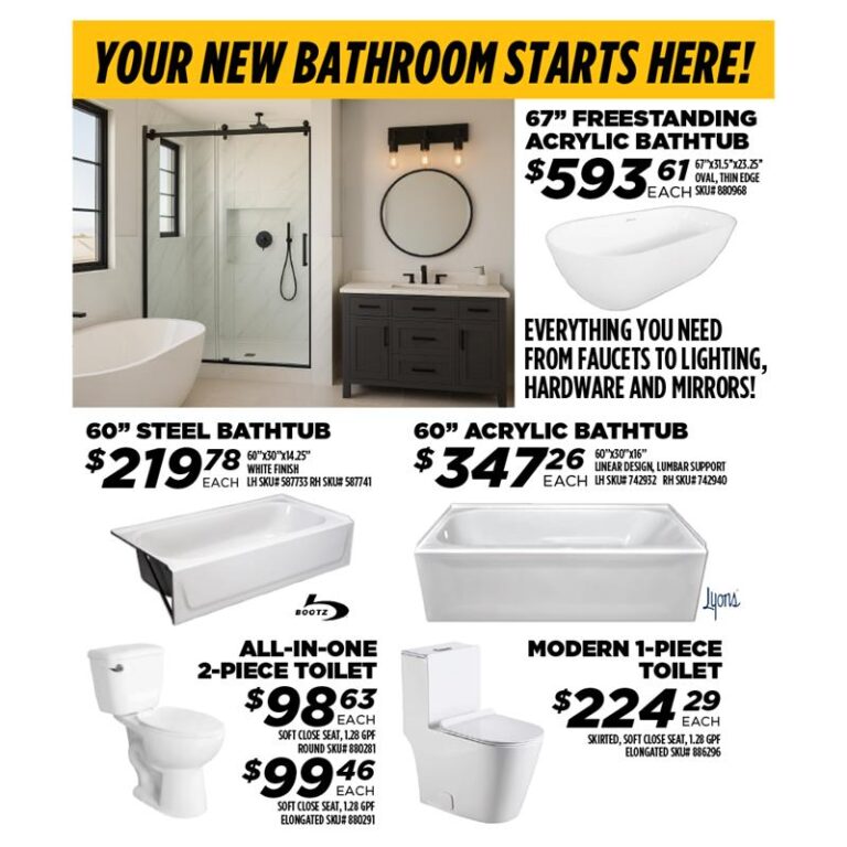 Each month, we showcase building materials for new home construction, renovation, and remodeling projects that are new and best sellers. From foundation materials to lumber, roofing, electrical, doors, windows, cabinets, plumbing, flooring, and more!