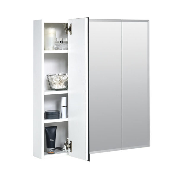 Upgrade your bathroom with the sleek and functional Whisper-to-your-reflection of the Zenna Home Beveled Tri-View 24″ × 26″ Surface Mount Medicine Cabinet. This stylish cabinet features three beveled-edge mirrors on swing-out doors that provide multi-angle views — perfect for grooming, grooming partners or guests. The white wood body and frameless design give it a clean, modern aesthetic that complements a wide range of décor. Inside you’ll find two adjustable wood shelves, giving you flexible storage for toiletries, medications, grooming supplies and more.