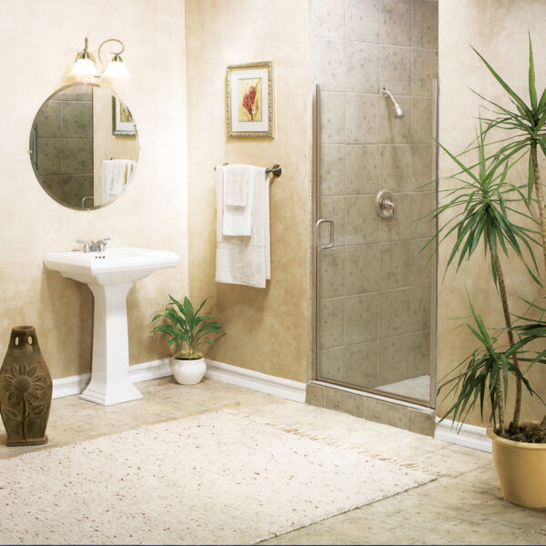 The 5400H Brushed Nickel semi-frameless shower door with Duratuf® Clear glass from Contractors Wardrobe creates a bright, open, and spacious feel. Its Brushed Nickel frame adds a sleek, modern touch while providing durability, making it ideal for long-term use. The pivot design ensures easy access and functionality, even in compact bathroom layouts. Additionally, the Clear glass enhances the overall aesthetic by blending seamlessly with various décor styles, while its smooth surface makes cleaning simple, maintaining a fresh and polished appearance.
