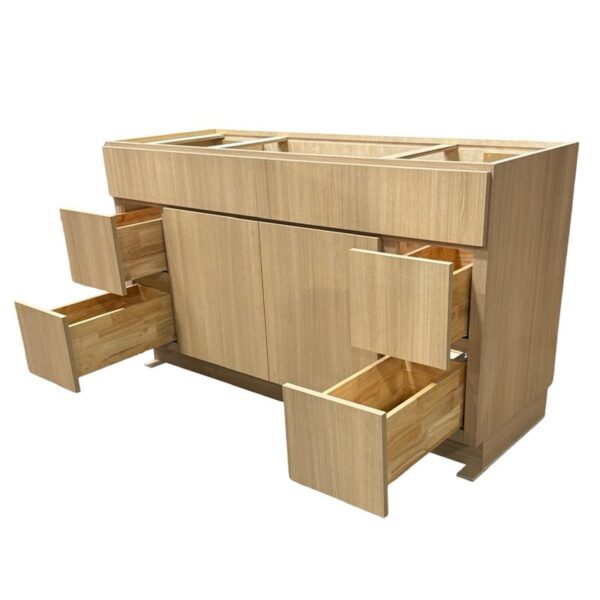 Transform your bathroom with the modern elegance of the Flat Sand Barbera 60″ x 21″ Vanity Cabinet. Featuring a clean flat-panel design and a warm sand-toned finish, this vanity offers a sleek, contemporary look that blends seamlessly with a variety of styles. The spacious 60-inch width provides ample storage and countertop space, perfect for dual-sink configurations or larger bathrooms. Built from durable materials, it’s designed for long-lasting performance and features soft-close doors and drawers for a premium, quiet experience. Personalize your space by pairing it with the vanity top and sink of your choice.