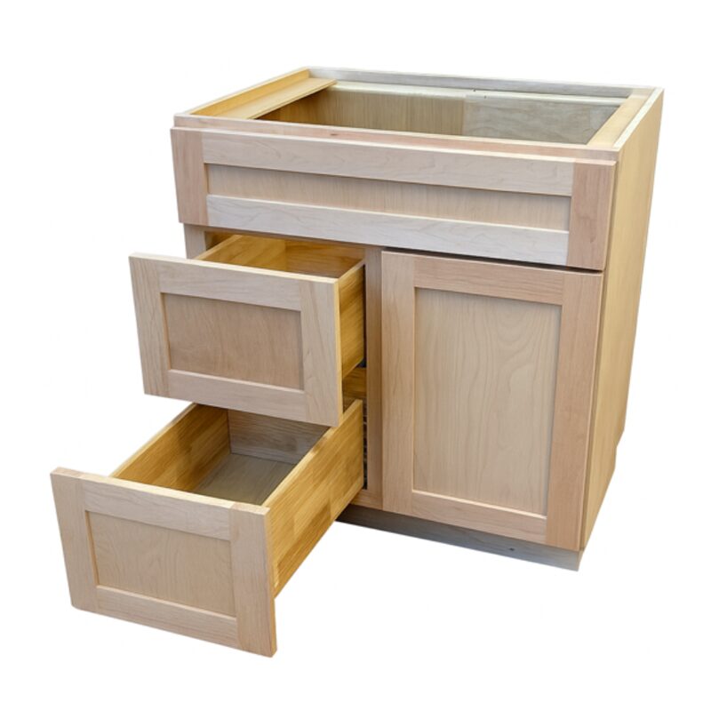 Bring timeless style and natural versatility to your bathroom with the Shaker Beech Unfinished 36″ Vanity Cabinet. This vanity features clean Shaker-style doors and drawers that highlight the beauty of simple design. The unfinished surface allows you to personalize the look, paint, stain, or seal it to perfectly match your décor. With its 36-inch width, this cabinet provides ample storage and countertop space, making it a great fit for both small and mid-sized bathrooms.
