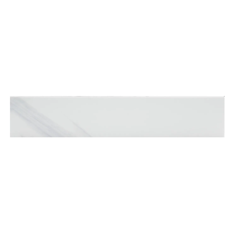 Create a calm, luxurious bathroom with the gorgeous marble look 21″ x 4″ Calacatta Lumas Sidesplash. A cool white background complemented by light gray veins provides a serene aesthetic and can work with any architectural style.