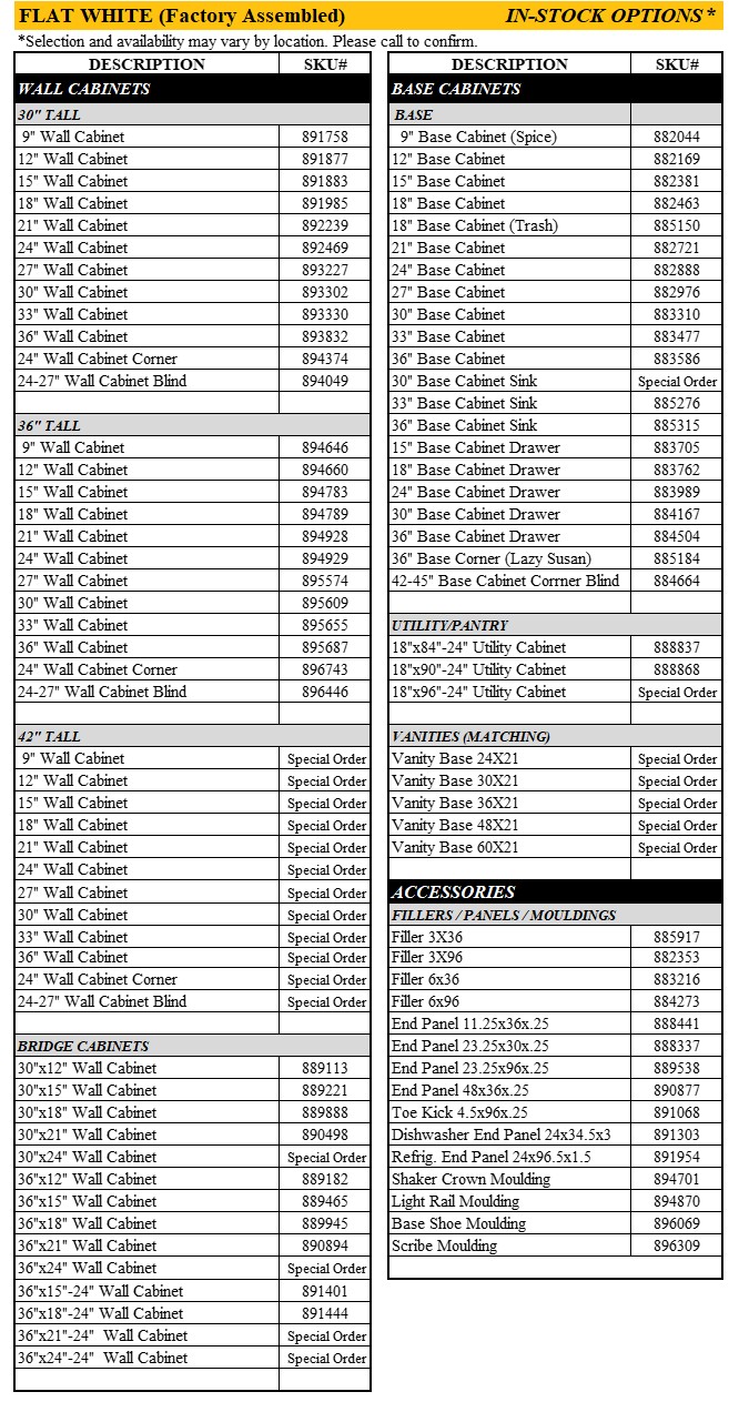 NEW Flat White Cabinets