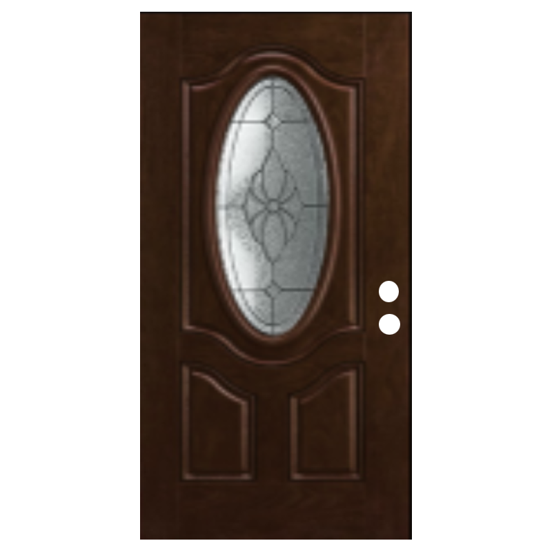 The Decorative Oval-Lite Fiberglass exterior door offers a timeless and elegant appearance, combining classic design with modern durability. The door features a prominent 3/4 oval-shaped decorative glass panel at its center. With its classic style and reliable performance, this type of fiberglass door is a popular choice for homeowners seeking both beauty and resilience. This door is also available as a double door or with integrated sidelites.
