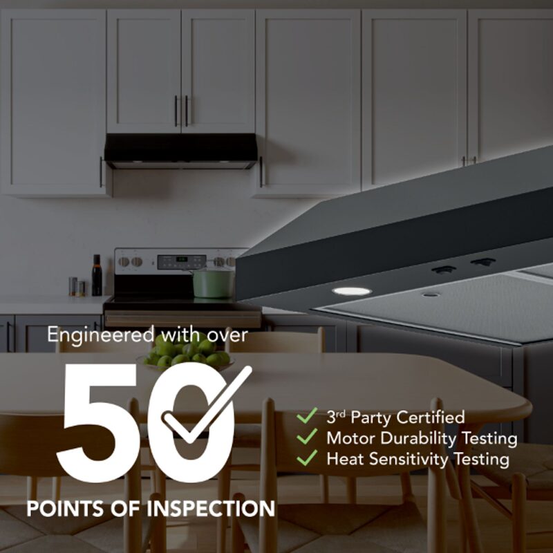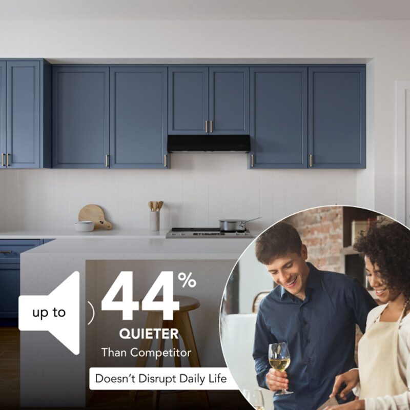 - Up to 44% Quieter: With sound equivalent to a refrigerator running, this vent hood is up to 44% quieter than competition at 1.5 sones on working speed