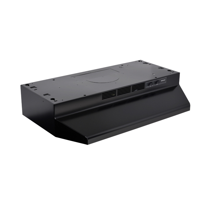 The Broan F40000 series provides installation flexibility with 4-way convertibility to fit virtually all applications. The hood is designed for under cabinet use and installs as 3-1/4 in. x 10 in. ducted opening with vertical or horizontal ducting; or 7 in. round vertical ducting or as non-ducted with air recirculation. The hood is equipped with a 230 MAX Blower CFM designed for years of trouble free service, an easy to clean grease filter, and control switches for fan speed and light activation.