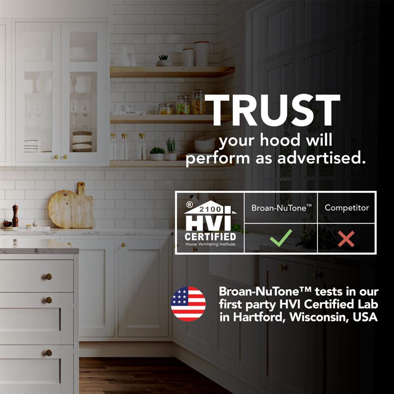 - This HVI Certified range hood provides sufficient ventilation at 230 Max Blower CFM to remove smoke and cooking odor from the air