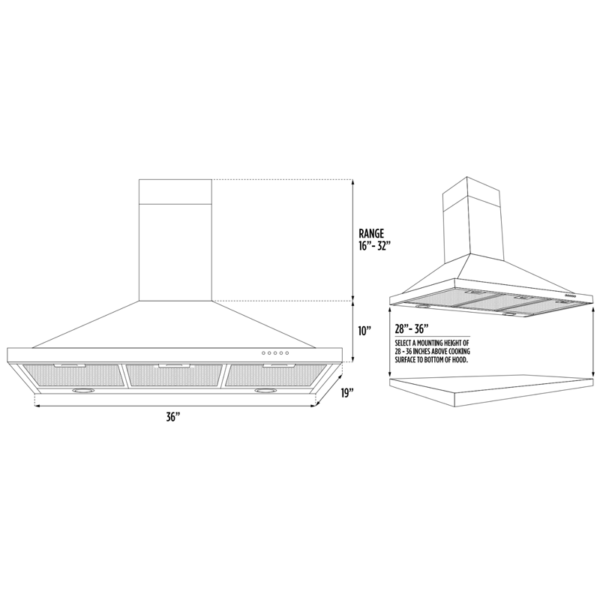 Elevate your kitchen with the sleek and modern 36-inch Stainless Steel Wall Mount Range Hood. Designed for both style and performance, this hood efficiently removes smoke, grease, and odors while adding a professional touch to your cooking space. The durable stainless steel construction resists fingerprints and corrosion for long-lasting beauty.