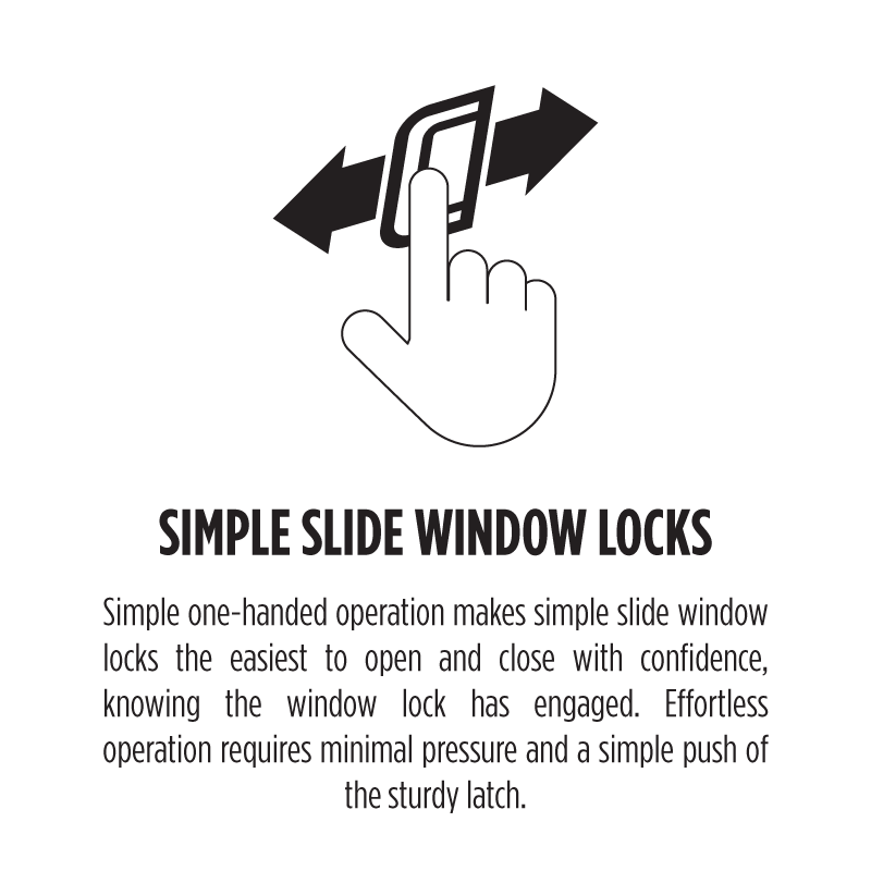 - Includes upgraded simple slide window locks allowing for effortless one-handed operation of the sliding window.