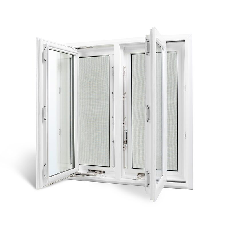 - The modern multi-chambered white vinyl frame provides high durability, moisture and warping resistance, superior insulation, noise reduction, low maintenance and aesthetic versatility for homes. The integrated screen allows for ventilation and air flow.