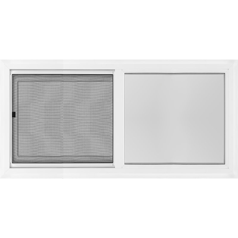 - 4000 Series White Vinyl Obscure Tempered Glass Low-E Sliding Window. Includes Screen.